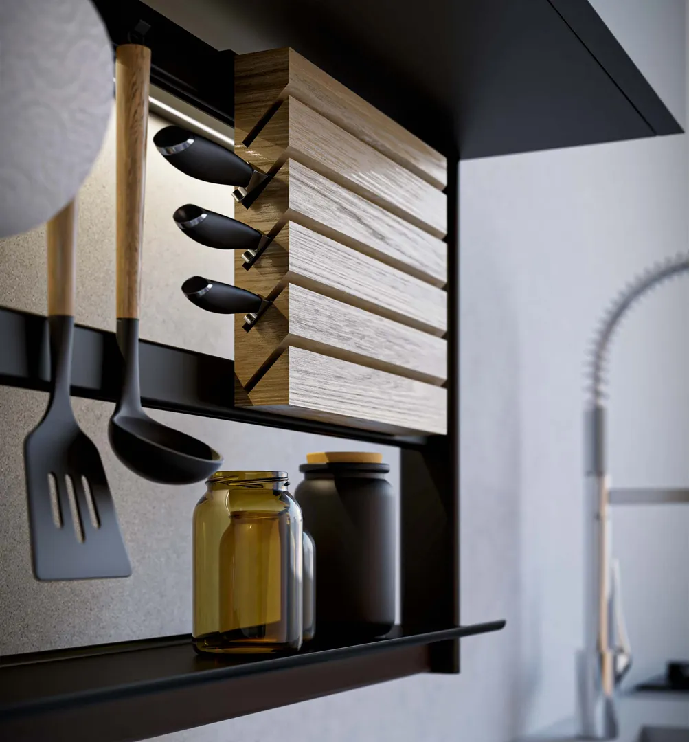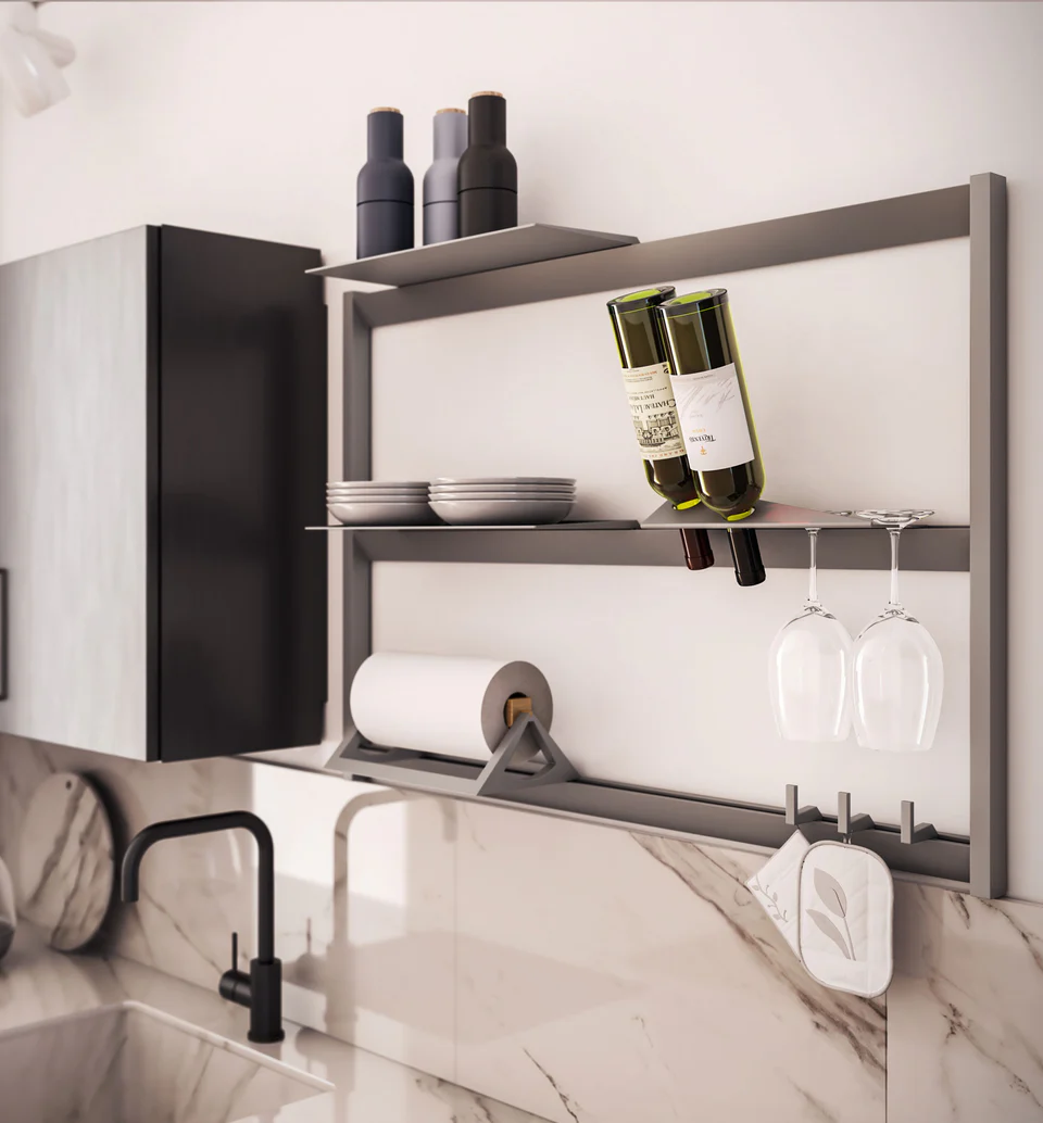 Installate uno di questi elementi ai pensili, a parete o direttamente sull'isola.